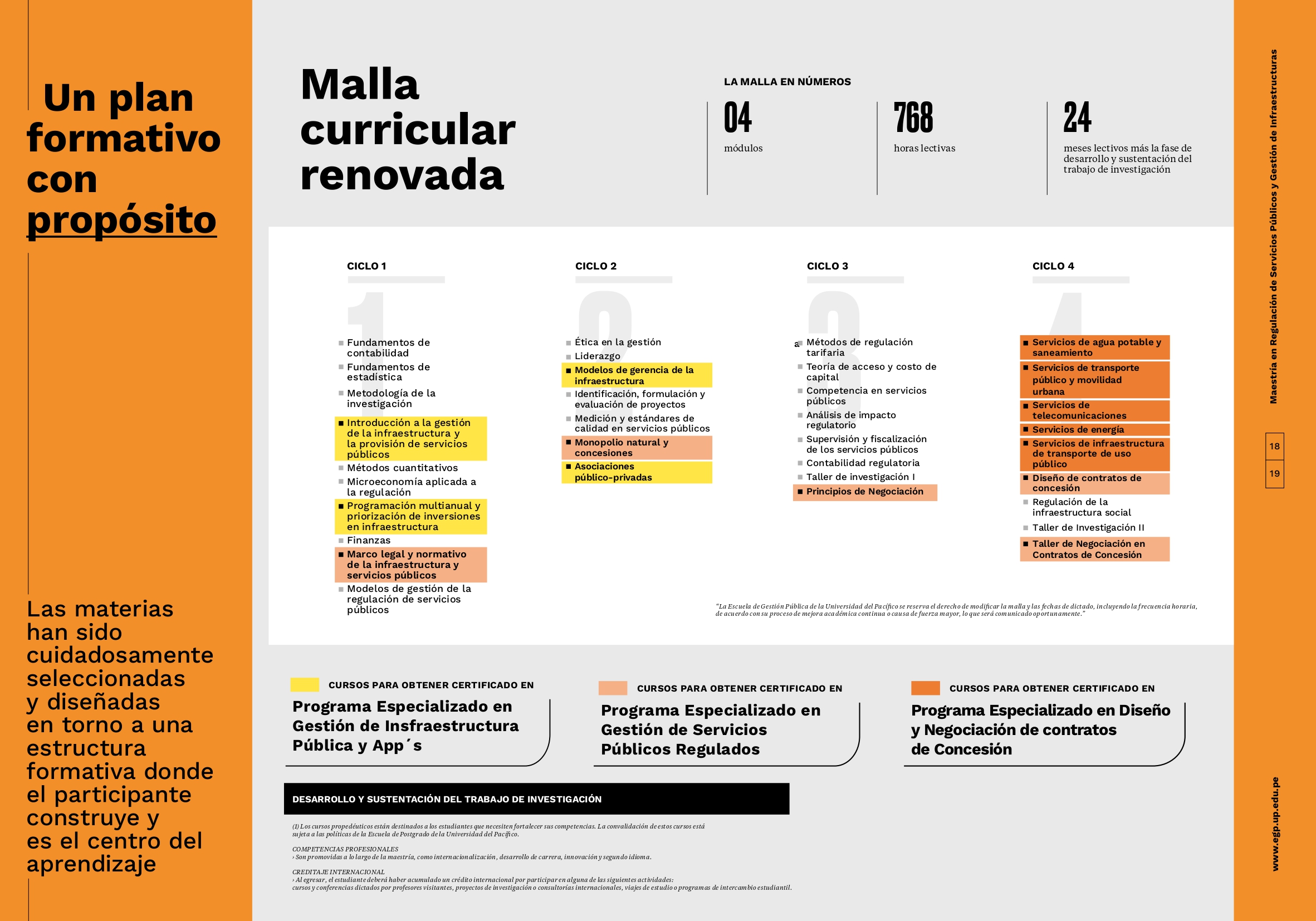 Inicio de Clases Agosto 2026 | Modalidad Presencial | Duración de la Maestría 24 meses lectivos más la fase individual de desarrollo y sustentación del trabajo de investigación | Horarios Por confirmar | Inversión S/. 51,900 (consulte por financiamiento) | Informes Rossana Calla C. 960 096 871 / Lizeth Nuñez C. 933 896 788 |
